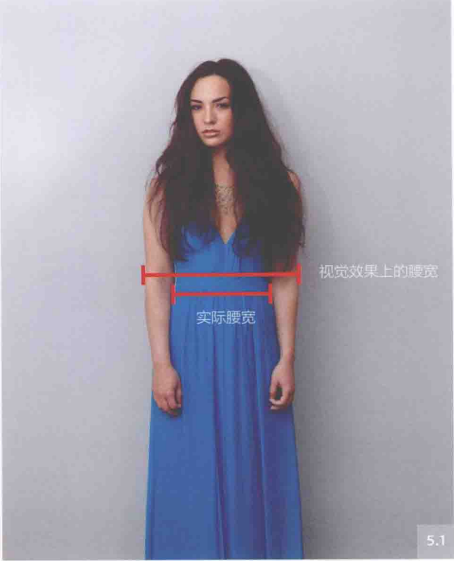 如果拍摄对象的手臂是笔直下垂的,没有其他手势,两只手臂会在视觉效果上增加腰部的宽度,从而使身体显得更宽、更胖。