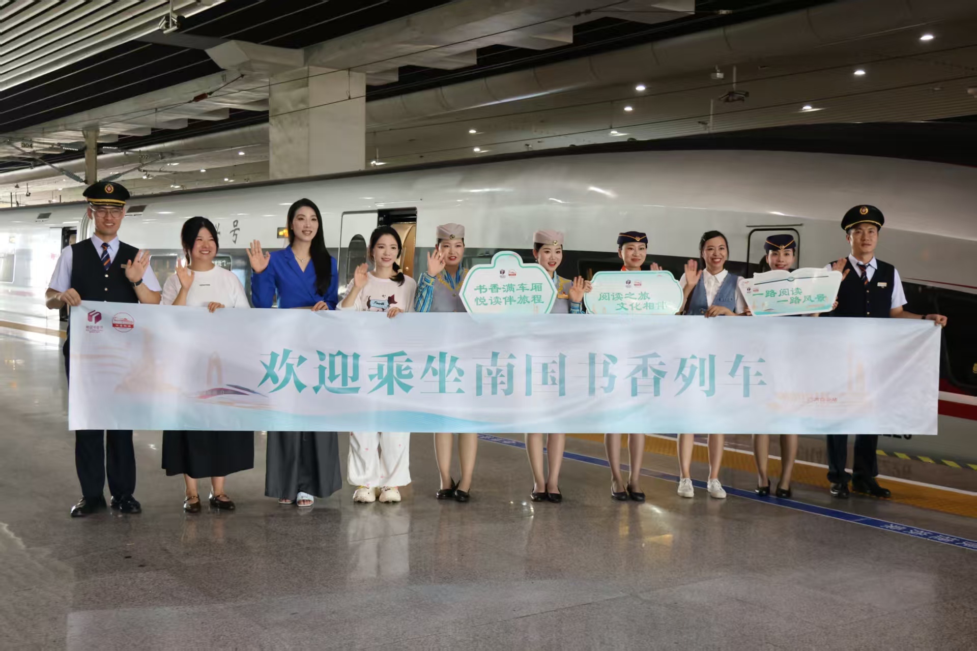 8月17日8时47分,广州南站站台上,G3786次南国铁路“书香列车”在晨光中缓缓驶出。开行“书香列车”是国铁广州局2025年南国书香节“书香铁路˙我喜爱的好书”的一项重要活动,未来一段时间,往返于北京、上海、西安、昆明、济南等方向的多趟高铁列车,与广东省内广州南、广州白云、深圳北等10余个重点车站焕新亮相的“书香驿站”一道,共同为旅客编织一张充满书香的旅途文化网络。