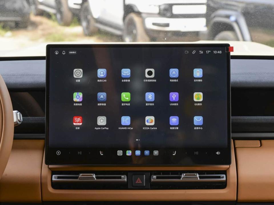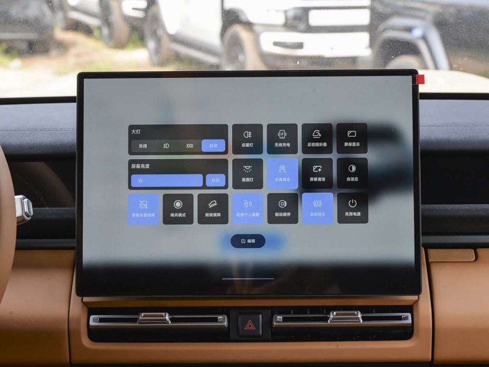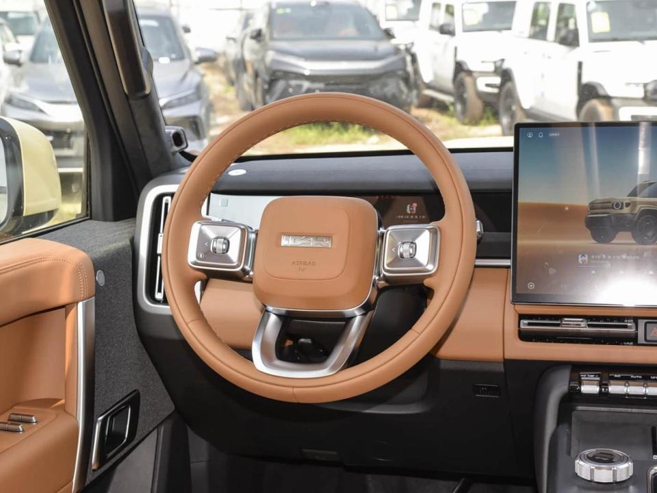 内饰方面,iCAR V27以“星舰座舱”为设计核心,在保持硬朗风格的同时,极大地提升了豪华感与舒适度,彻底告别了以往硬派车内饰粗糙的刻板印象。中控台采用经典的T型布局,并巧妙保留了驾驶模式切换旋钮与空调控制等关键物理按键,确保了在越野或驾驶途中盲操作的便利性与安全性。