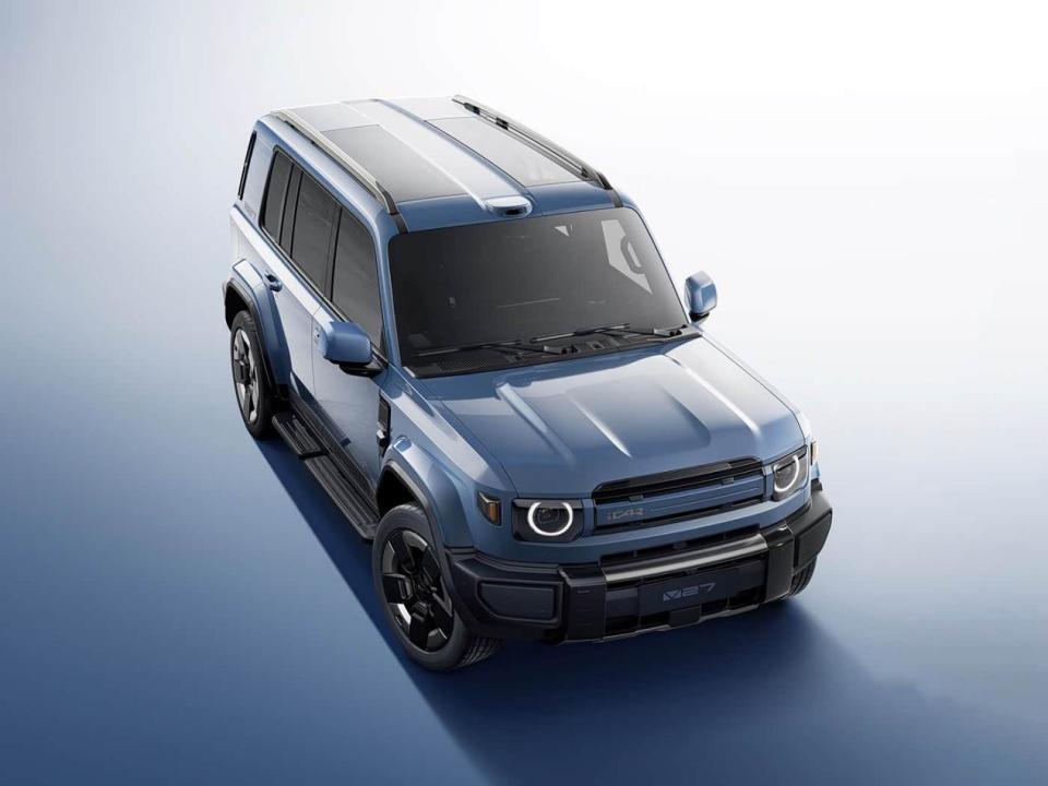 新车采用了未来经典设计理念,方正魁梧的车身轮廓下,车头部分的撞色前格栅与复古圆形大灯形成强烈视觉反差,既致敬了经典硬派越野,又通过环形灯带等细节流露出科技感。车身侧面,近1:1的宽高比配合极简的直立A柱与机械式外拉手,让机械美学与智能功能相得益彰。