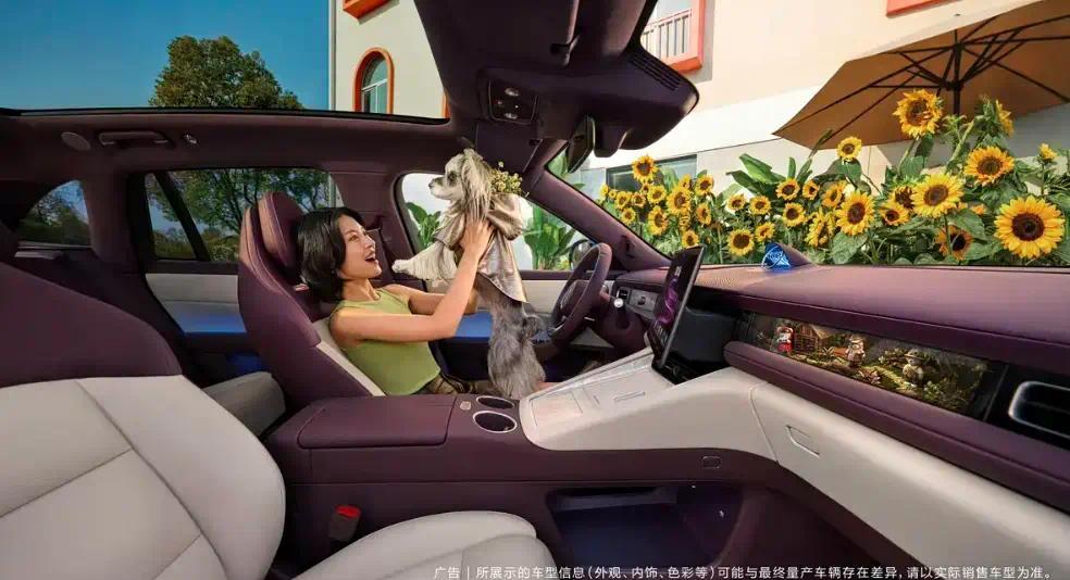 日前,我们从网上获得一张问界M6的内饰官图,采用紫色+白色的双拼配色,悬浮式中控屏是一块向日葵屏,可根据需求左右旋转,方向盘设计的比较粗壮,采用内嵌式仪表和内嵌式副驾副驾娱乐屏。此外,新车还会提供双无线充电板、全景天幕、一体式运动座椅、HUD抬头显示、星环散射体等配置。